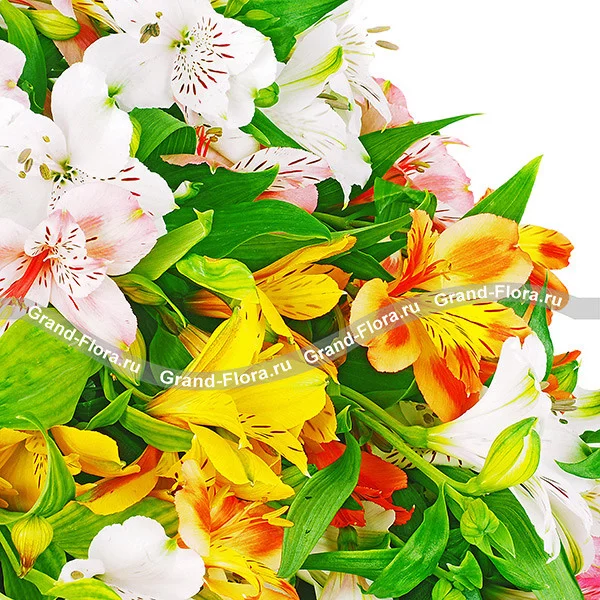 Роскошная охапка альстромерий с вкраплениями зелени придется по душе активным, жизнелюбивым, целеустремленным девушкам. Букет идеален в качестве презента за какие-то жизненные заслуги – окончание учебного года, защита диплома, повышение по карьерной лестнице, рождение ребенка. Альстромерия считается жизнестойким цветком, она имеет свойство распускать бутоны даже в срезанном состоянии.