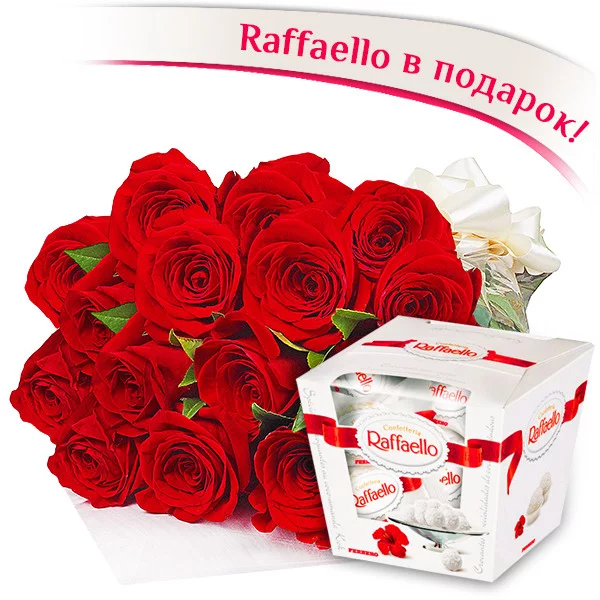 11 красных роз + Raffaello